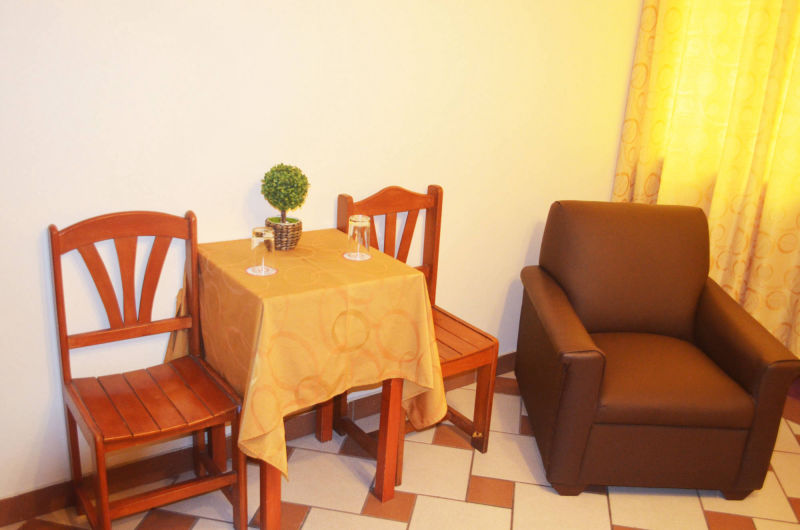 - 2 camas de 2 plazas. - Velador, ropero. - Ventilador, lámpara. - Tv Cable. - Baño y ducha privada. - Agua fría y caliente. - Mesa, 2 vasos y 2 sillas. - Teléfono a recepción